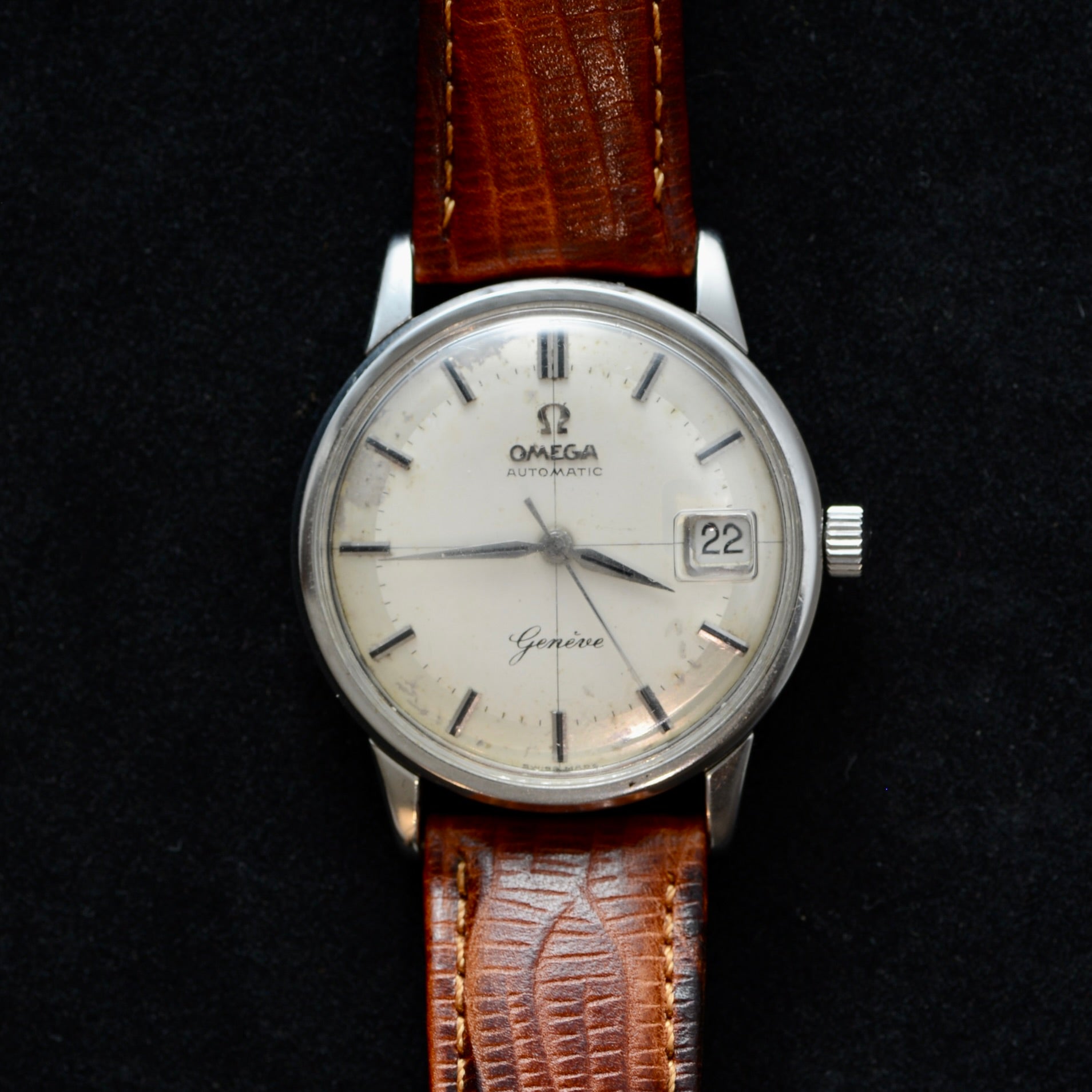 This Omega is defined by its "Honest" vintage character. The two-tone silver dial has developed a soft, warm patina that tells the story of its 60+ year history. Rather than being repainted, the dial remains in its 100% original state, offering a look that simply cannot be replicated by modern restoration. It features hand-applied baton markers and sharp "Dauphine" pointers that catch the light beautifully against the aging silver surface.